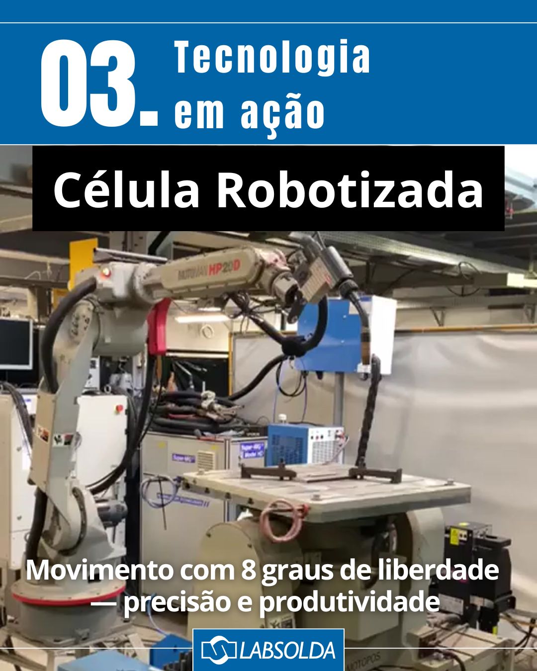 Também foram apresentadas tecnologias que compõem a infraestrutura do laboratório, como a Célula Robotizada — formada por um braço antropomórfico e uma mesa rotativa — que oferece movimentação da tocha de soldagem e da peça com até oito graus de liberdade.
