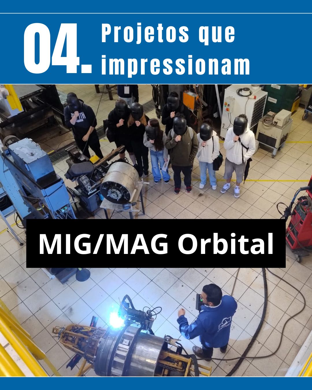 No Instituto de Soldagem e Mecatrônica (LABSOLDA), os participantes tiveram a oportunidade de conhecer projetos de destaque, como o Projeto “Stud Welding”, voltado à fixação de componentes na área naval, e o Projeto de Soldagem MIG/MAG Orbital, destinado à automatização da construção de dutos terrestres, com foco em alta produtividade.